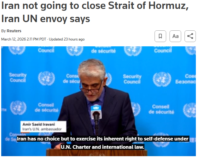 >Hegseth: "The only thing prohibiting transit in the straits right now is Iran shooting at shipping. It is open for transit should Iran not do that." [lol]