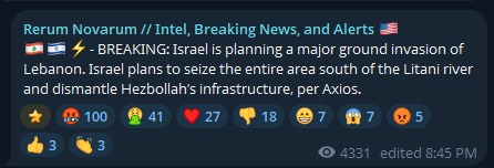 >BREAKING: Israel is planning a massive ground invasion of Lebanon, officials say, Axios’@BarakRavid reports, noting the push could turn Lebanon into the new epicenter of the war with Iran by targeting Hezbollah’s positions and territory.