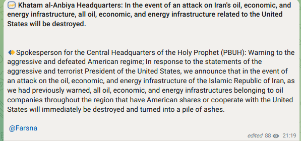 >>530680438Based. Hopefully they bomb Israel's gas fields, desalination plants, and nuclear plants next.