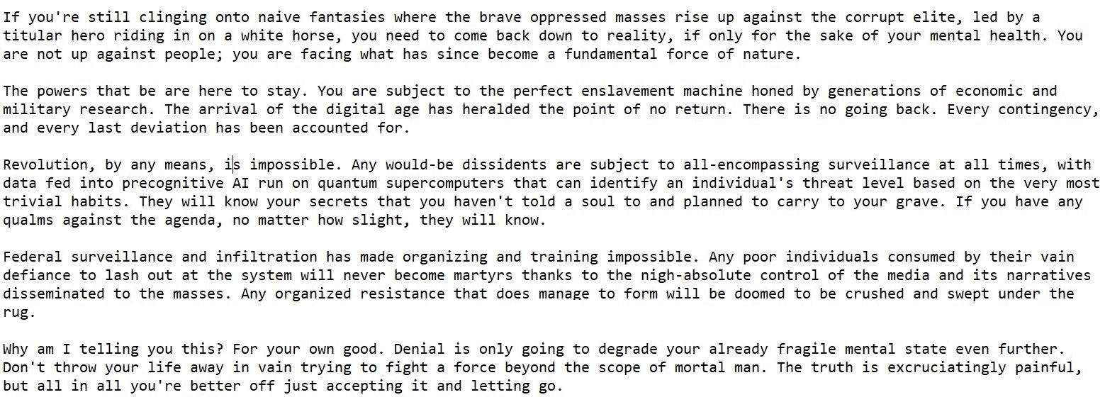 >>530690316>NPC>"No Internal Monolog"Were 2 similar discussions on here that got inordinate amounts of kvetching from the media, and the judeoleft. It was incredibly telling we were brushing up against something (((they))) were afraid of people discovering.