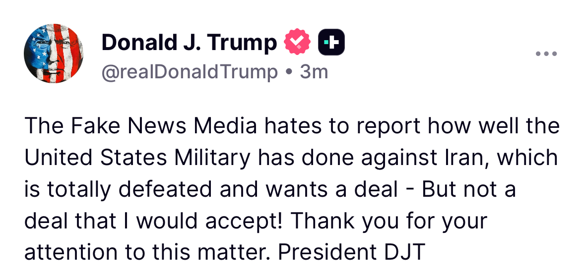 >>530685237Seems like Trump wants to use it as leverage>we should come to an agreement: the US won't attack Iranian energy if Iran lets shipping go through the straitHe's already demonstrated he can attack it at will.
