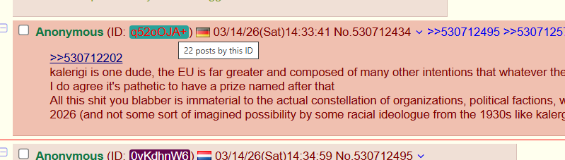 >>530705603America is ruled by an administration who hates the EU. He wants to divide and conquer Europe. If Europe works together then it can be as strong as the US. We would then be able to stand up to the US and not be pushed around by them.>RussiaAn even worse country which wants to push us around even more than the US does. Russia has been invading Europe for the last 4 years.>>530709108>Maybe Britain should join the EU then.I think we may well do in the coming years.>>530711881India is growing in power. If they can operate successfully as a single entity (and I think they can) then so can Europe.>>530714169The EU is the first step.>>530720146It's probably a paid propagandist, yes.>>530725913I don't think Ursula von der Leyen is Jewish. In any case, I don't care if a person is Jewish or not.