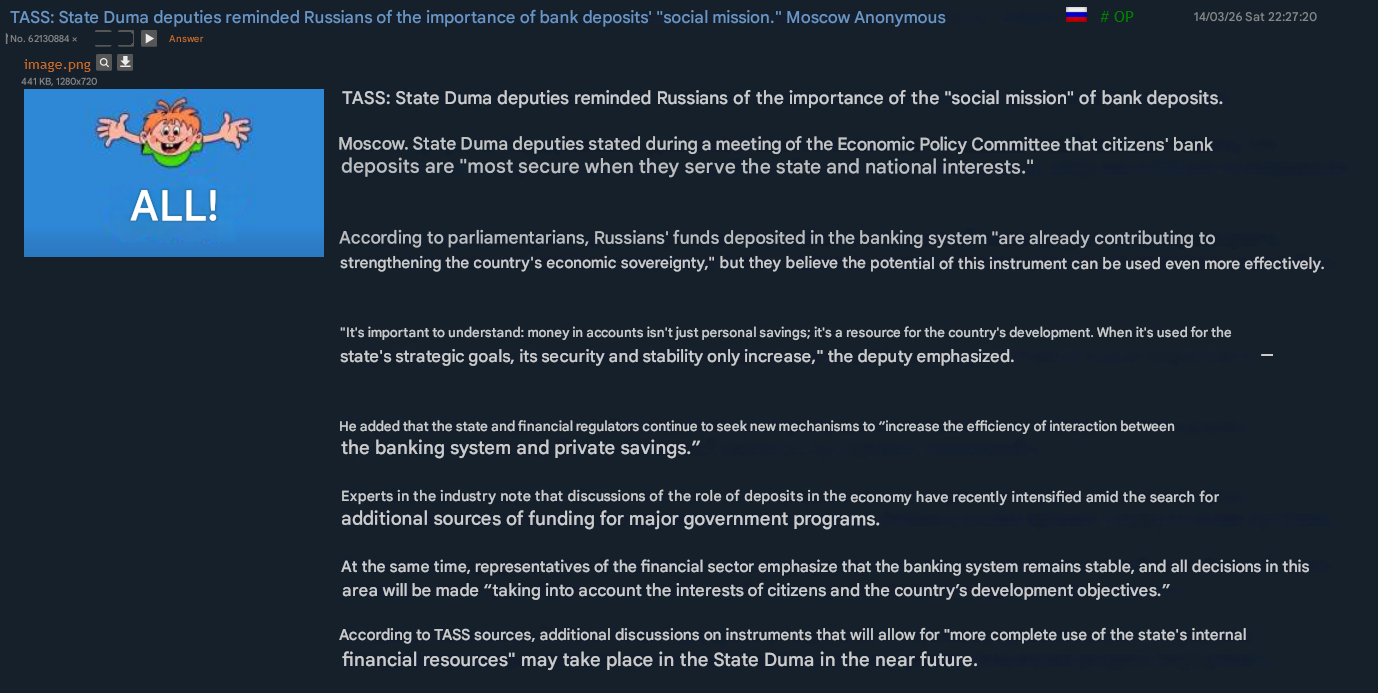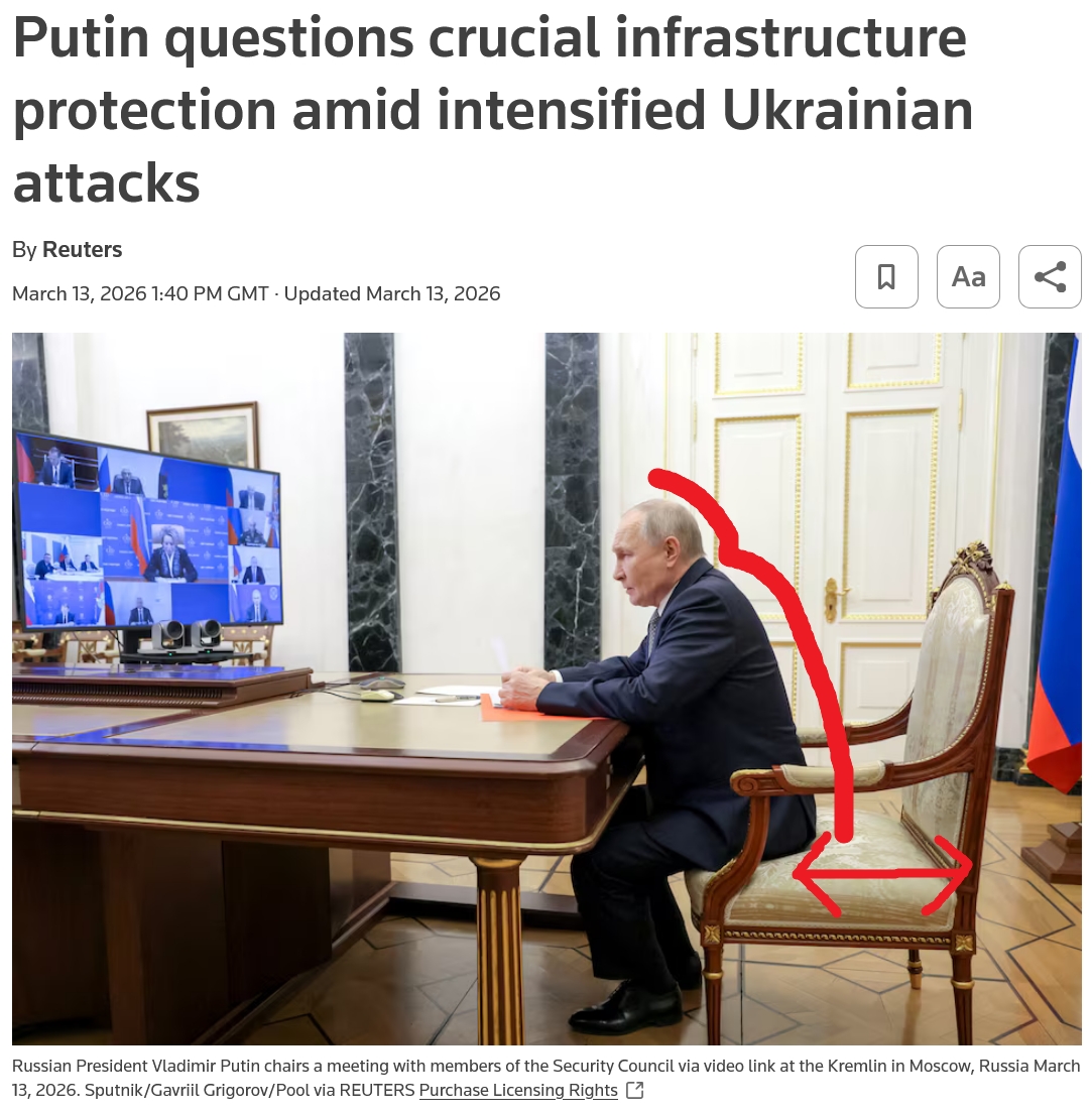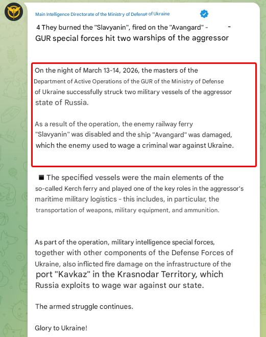 To add to OP>Confidential Russian Documents Obtained by HUR Show 1.3M Russian War Losses - 62% dead>US lifts sanctions on Russian oil that is already on tankers at sea until April 11, 2026>Ukraine claims 'successful' strike on 2 Russian ships ferrying weapons, equipment through Kerch Strait>Afipskyi refinery dronedAnything else?