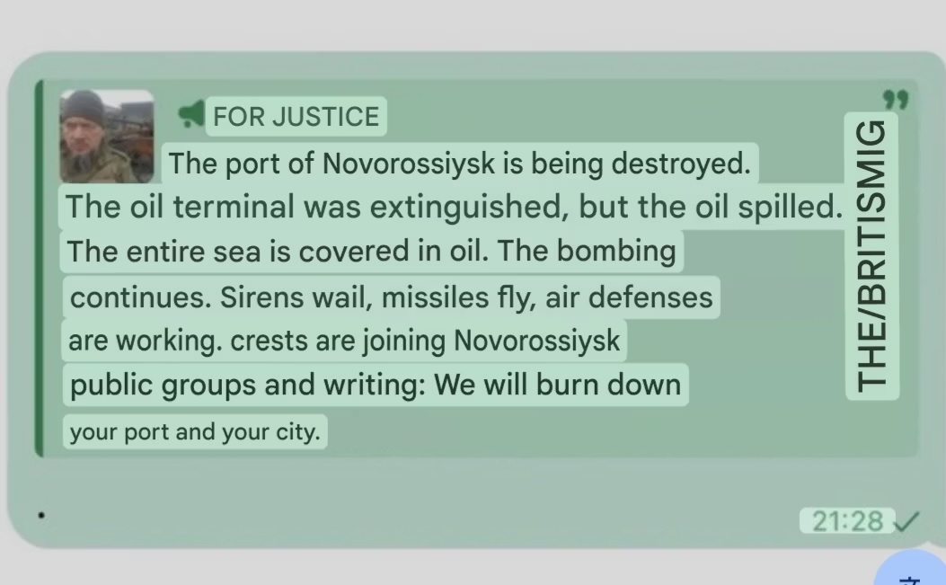 >Mid-day Ukrainian missile strikes at Russia's key oil export infrastructure city of Novorossiysk at this hour.>With the remnants of Russia's air defenses vanishing rapidly, missile strikes are no longer confined to overnight hours.YEBAAAAAAAAAT