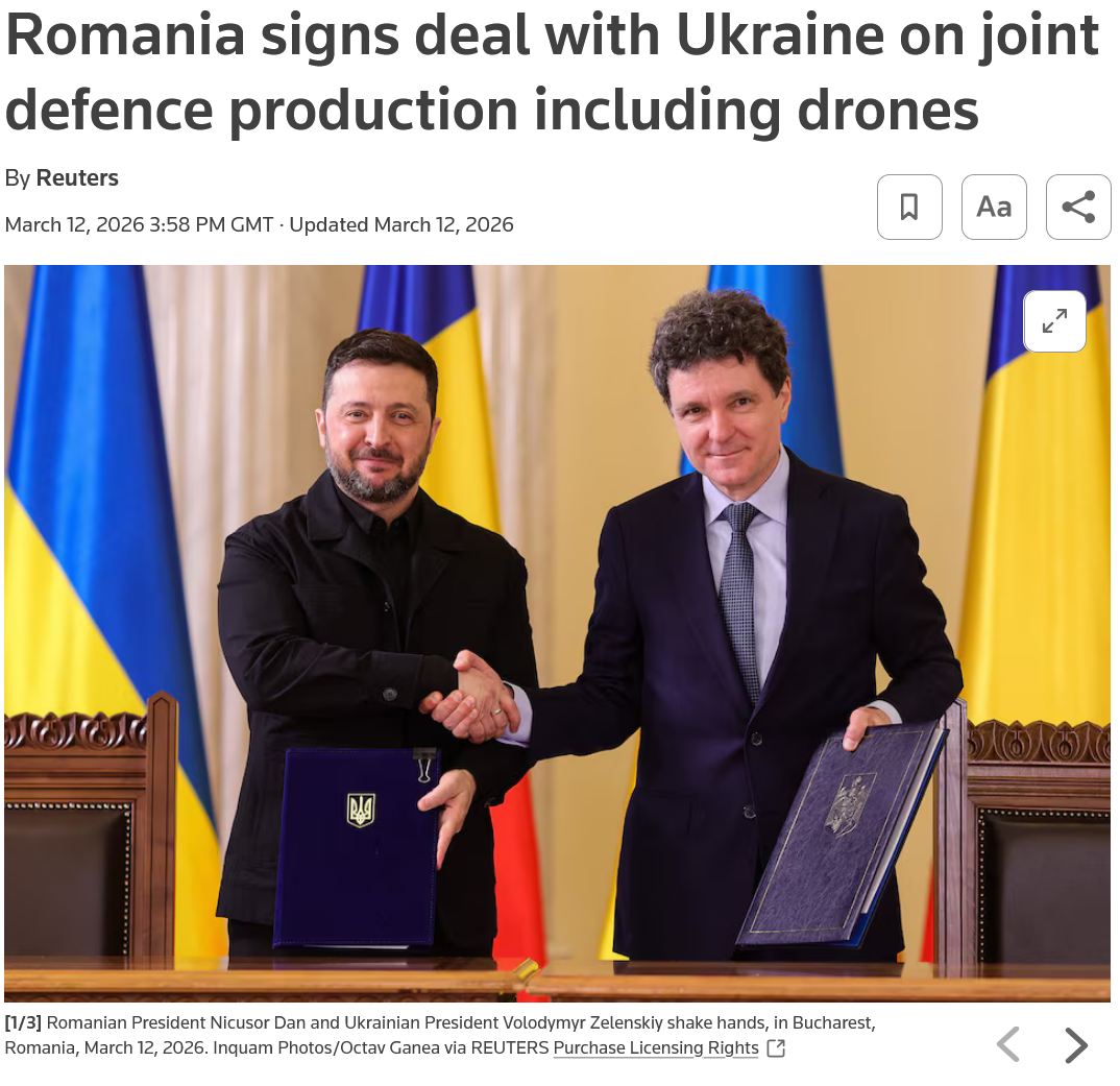 >Ukrainian Special Operations Forces struck Iskander launchers in Crimea>Ukraine claims 'successful' strike on 2 Russian ships ferrying weapons, equipment through Kerch Strait>Afipskyi refinery droned>Confidential Russian Documents Obtained by HUR Show 1.3M Russian War Losses - 62% dead>Ukraine opens battlefield data access to allies' AI models to train drone AI software t. UA MoD>Romania signs deal with Ukraine on joint defence production including drones>Ukraine has sent anti-drone specialists to 4 Middle Eastern nations, received requests of help from 7 others>Japan eyeing introduction of Ukraine-made drones for defense>US lifts sanctions on Russian oil that is already on tankers at sea until April 11, 2026Put these in next OP