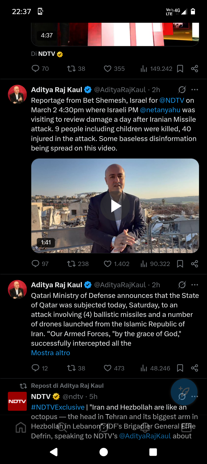 Reports of Indian journalist Aditya Raj Kaul, who had revealed Israeli PM Benjamin Netanyahu’s location, has been arrested by Israeli police from his shelter during the Iranian missile attack.This was Netanyahu’s last appearance in the mediahttps://x.com/ZardSi/status/2032917063849955644