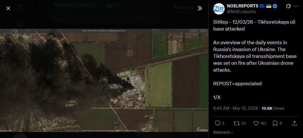 >Another Russian shadow-fleet tanker has been likely hit, this time the "Maran Homer" (IMO: 9761372). Reportedly while waiting for permission to enter the port of Novorossiysk, Russia, the tanker got hit by an USV.