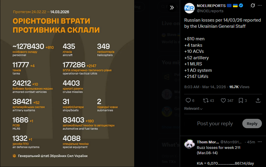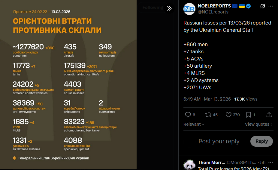 >Confidential Russian Documents Obtained by HUR Show 1.3M Russian War Losses - 62% dead