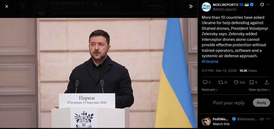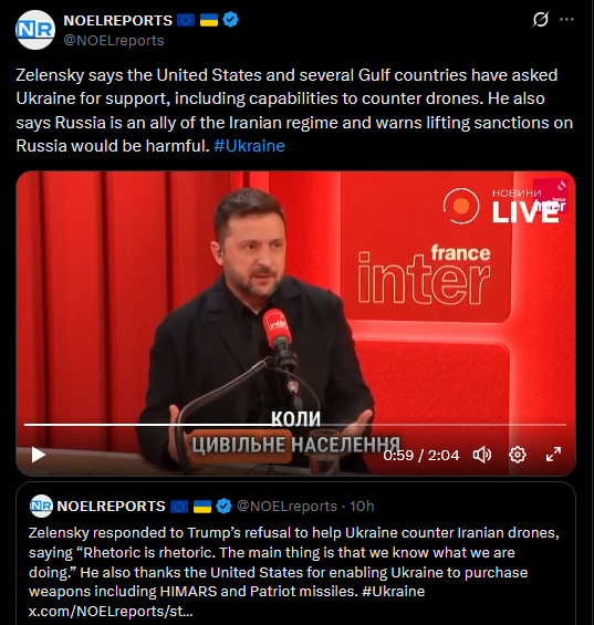 >Ukraine has sent anti-drone specialists to 4 Middle Eastern nations, received requests of help from 7 others