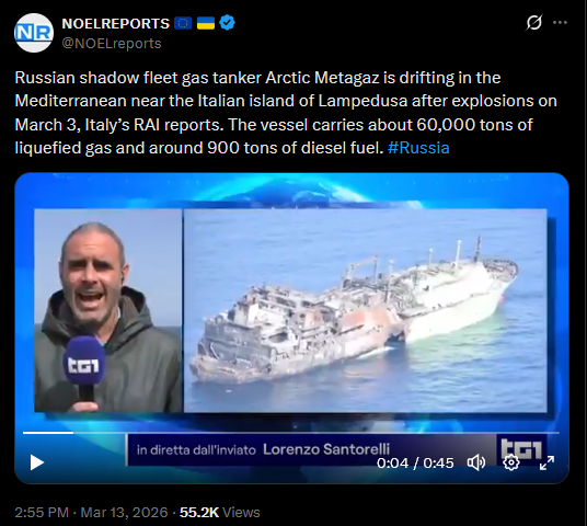>A sanctioned russian LNG tanker SUNK off the coast of Malta and Libya
