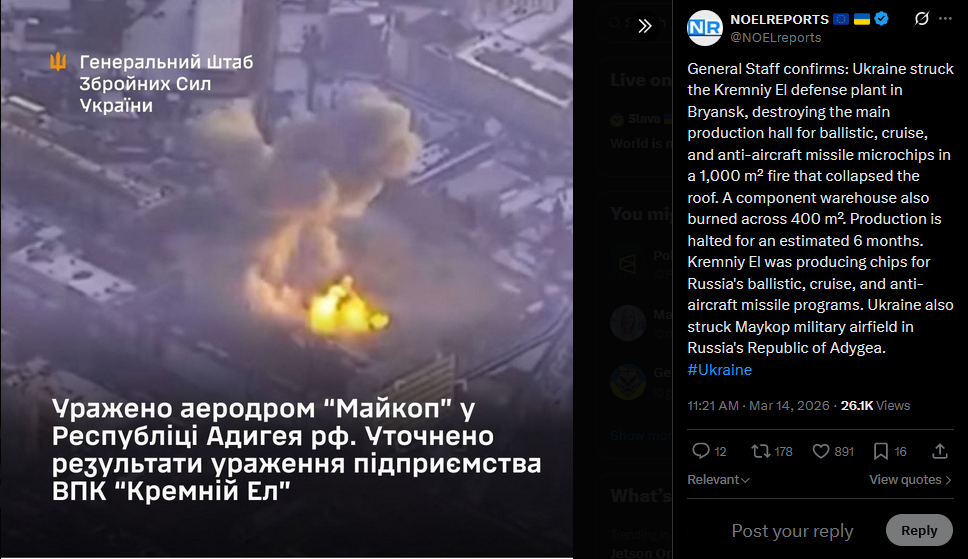 >Massive Storm Shadow strike at Kremniy-El microelectronics factory in Bryansk