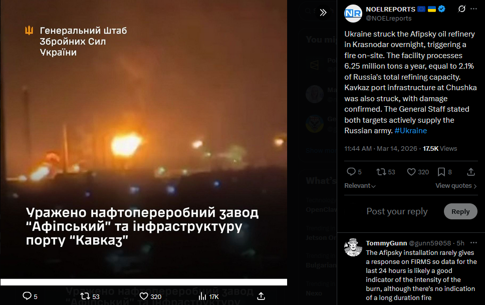 >Afipskyi refinery droned