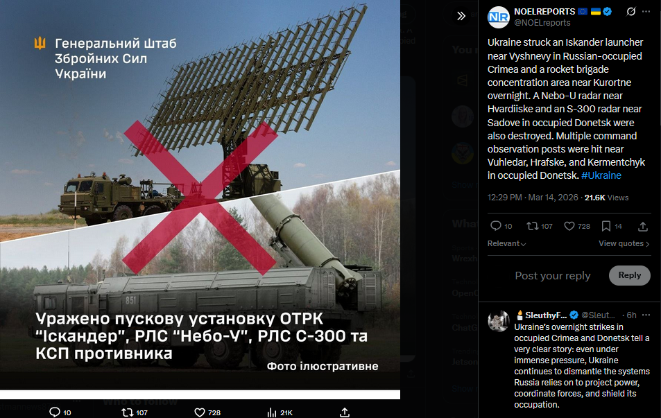 >Ukrainian Special Operations Forces struck Iskander launchers in Crimea