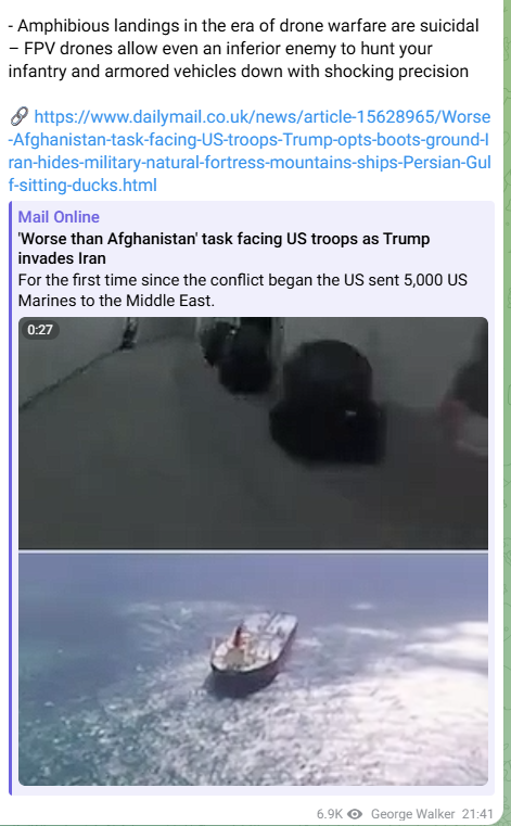 Man if we get endless footage of US marines getting exploded like we do Russians and Ukrainians shit is going to get rough.