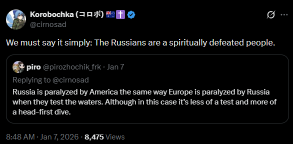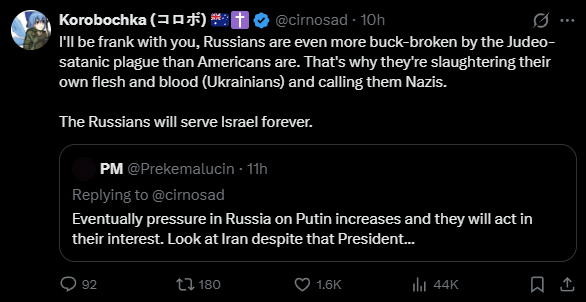 I imagine that the FVEY glownigger who set up this current MikeUSA–Cirnosad op is very obviously British, and related to the Vauxhall Cross geniuses that devised Krinky and Kursk.