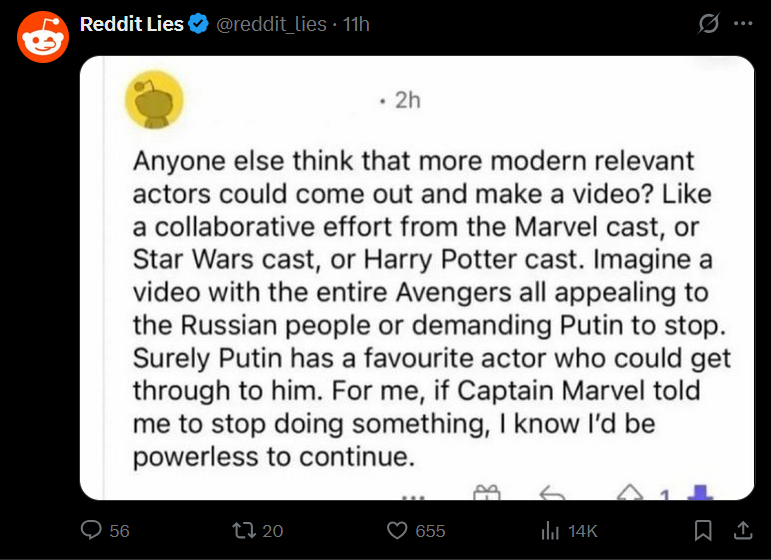 Guys I need the latest MAGA talking points I'm getting overwhelmed on X I can't respond to all those well researched posts proving this is the most disastrous US war since Vietnam. The strait is still closed, the economy is in freefall, allies are reluctant to intervene, the US is isolated and hated everywhere. Cmon...give me SOMETHING substantial to tell them, I wanna help !!