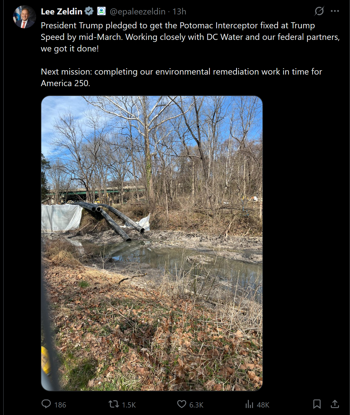 >niggers stand around doing nothing claiming they can't fix it for 9 months as billions of gallons of raw human shit flood into the potomic>these niggers make almost $800k a year btw>trump has to go and fix it>takes 3 weeks, not a year