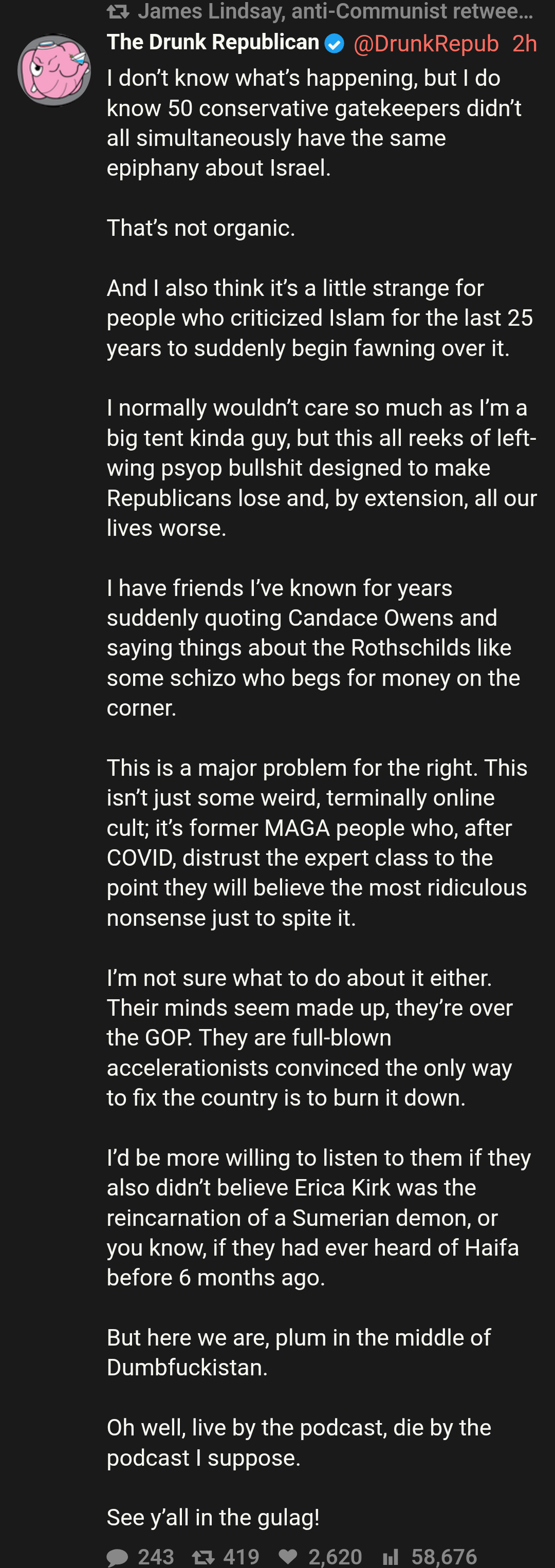 Yep, Candy and Cucker are a psyop, just look at Tucker's guests, all far left wing