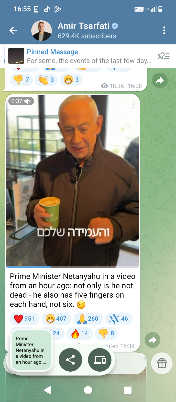 >Al Mayadeenatleast the "Serb" stopped posting fake AI vids! :DBibi status? Tel Aviv status?