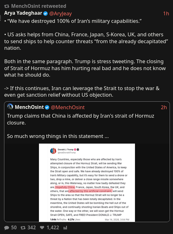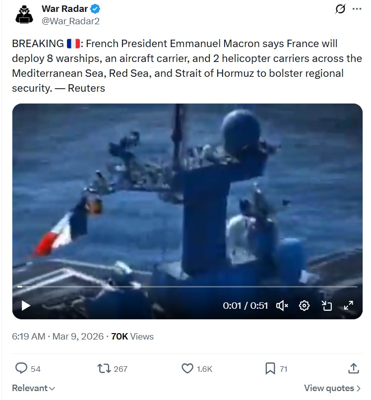 >>530797351>not a single country that has agreed to assist trump in escorting ships;)https://x.com/War_Radar2/status/2030996819639988654?s=20