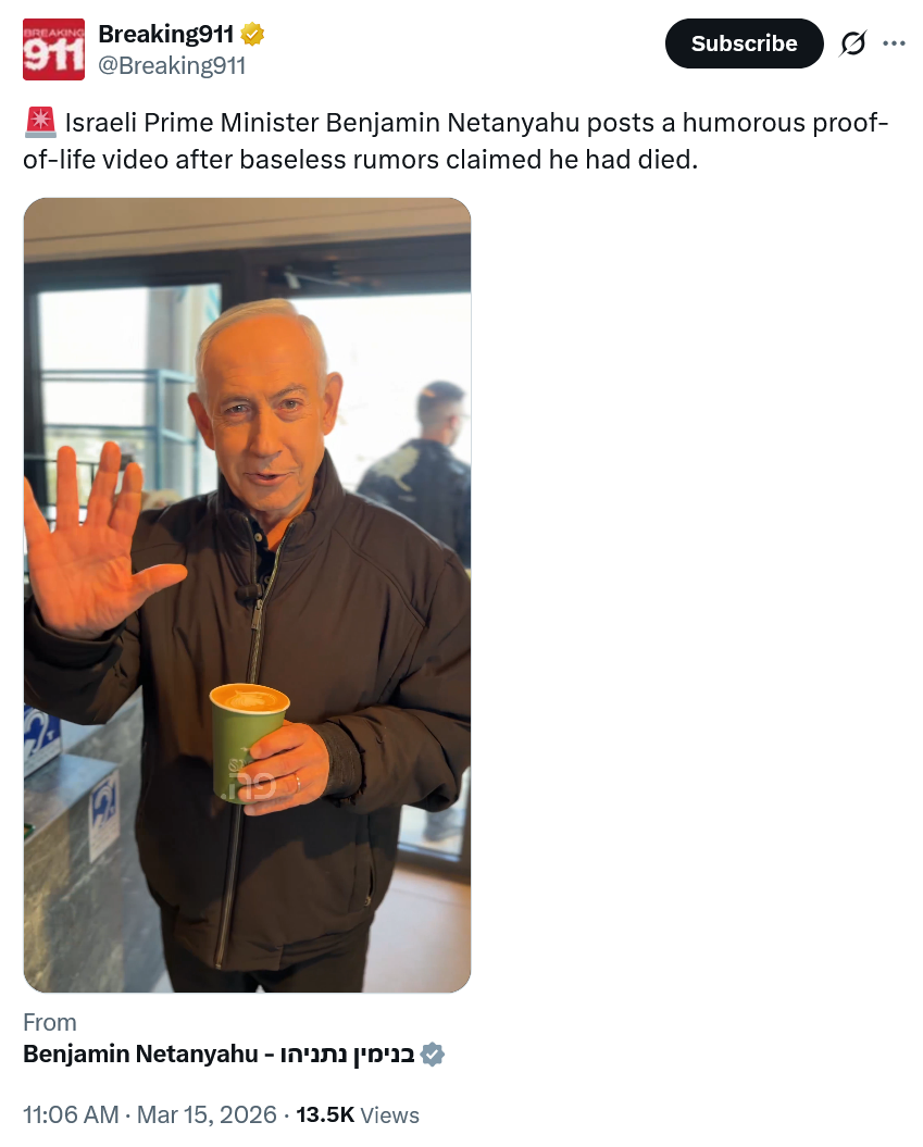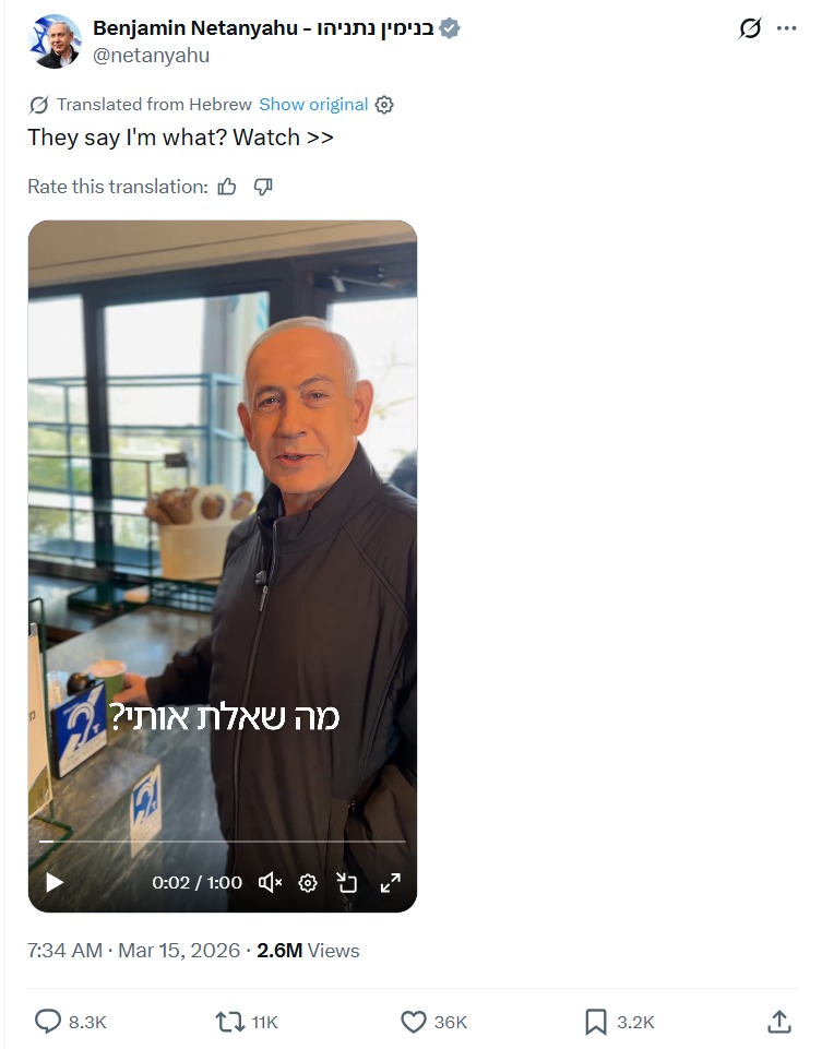 https://x.com/netanyahu/status/2033190035764232360?s=20>Bibi still alive>The two Khameini's are deadlol