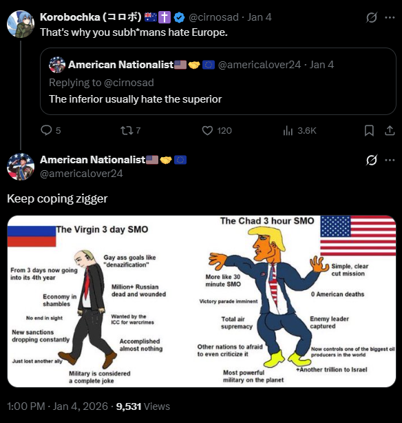 >>530802716I sincerely thought that shit was Unit 8200 slop. But the faggots actually pumped out one funny meme at last. CIA still stands at zero funny memes, btw.Our memes mocking their own fed memes are way more funnier.