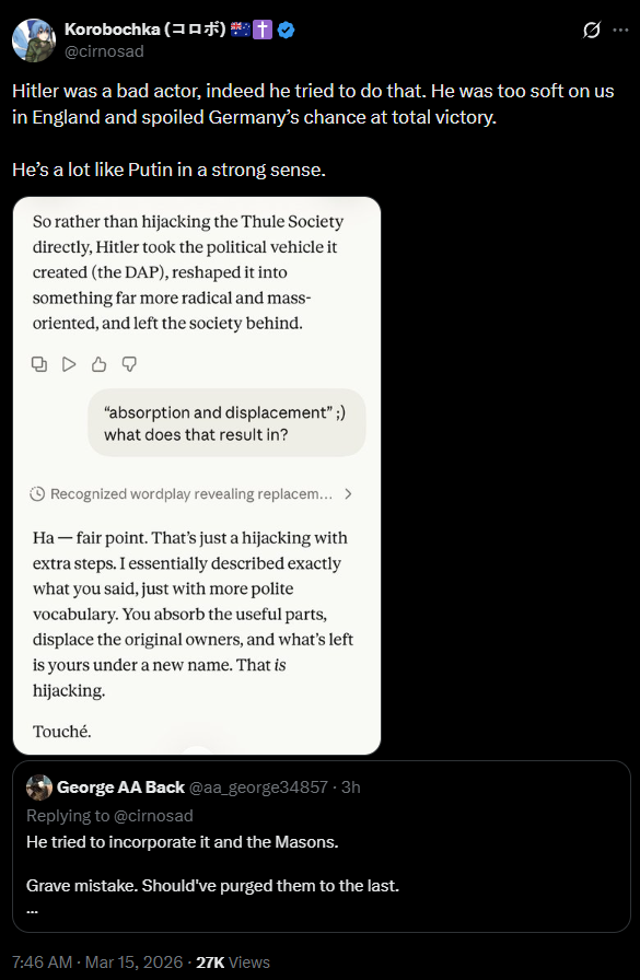 >>530804588>genuine, rabbid philosemite.I do not buy it. more like it is a powerful network and he want to fit. But I do not fan of exercises in telepathy so whatewer