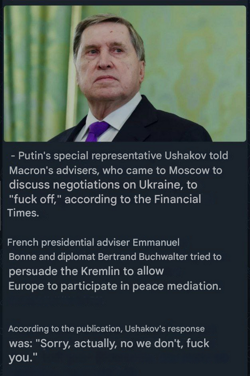 elgium's PM Bart De Wever:Since we cannot threaten Putin militarily or choke him economically without the U.S., there is only one method left: Making a deal