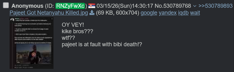 >>530798864This (>>530789768) you, nigger? HAHAHAHAHAHAJust up until 3 hours ago you were shitting up the general with low IQ claims and ""evidence"" that Bibi was 100% dead? What happened, serbshit shill? Your favorite Pakistani X accounts' intel ans analysis weren't that good after all?