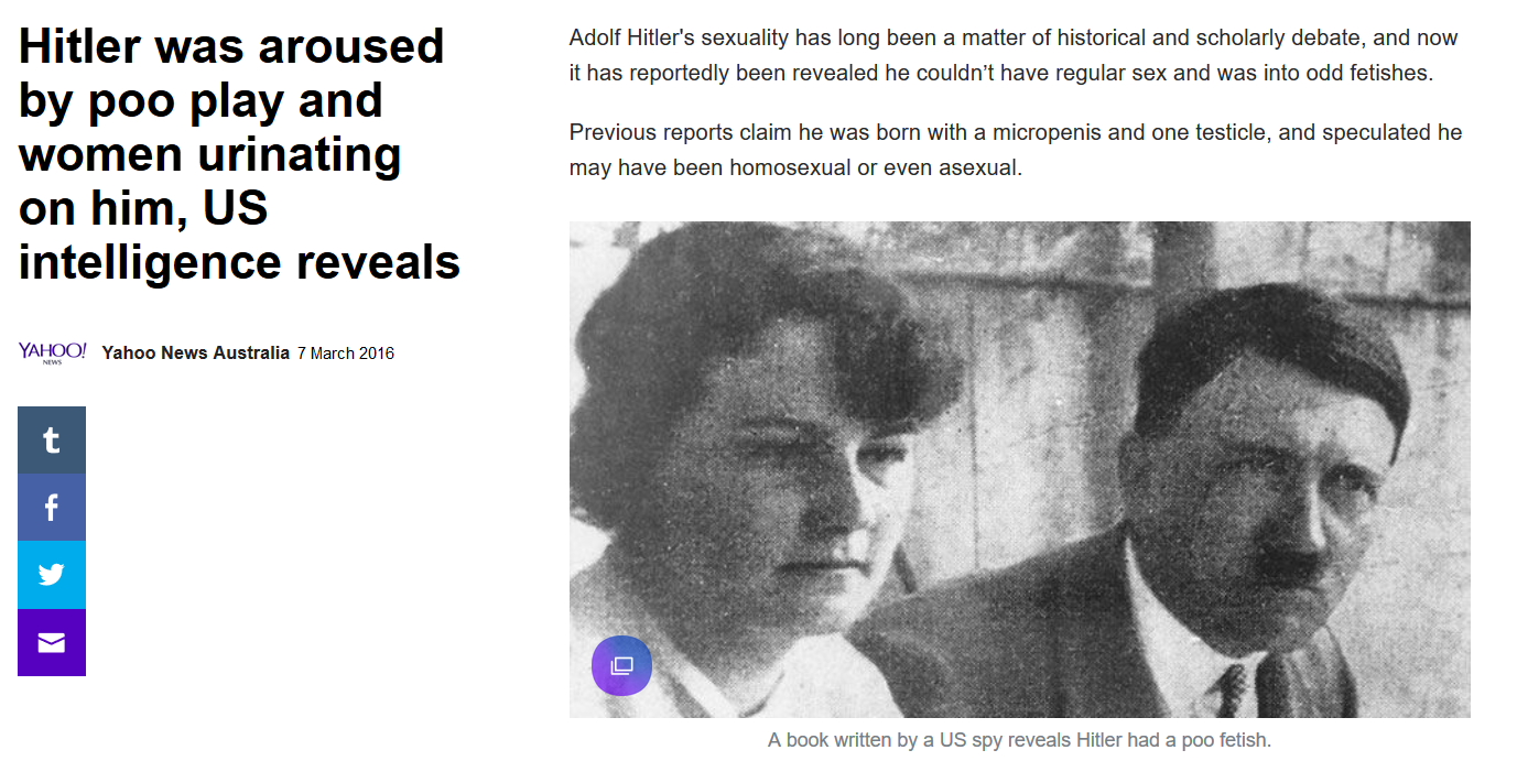 >>530800172Hitler (Jewish, brown-eyed, asexual, homosexual, mentally ill, drug-addicted degenerate with a single testicle, micropenis, and a peepeepoopoo fetish)