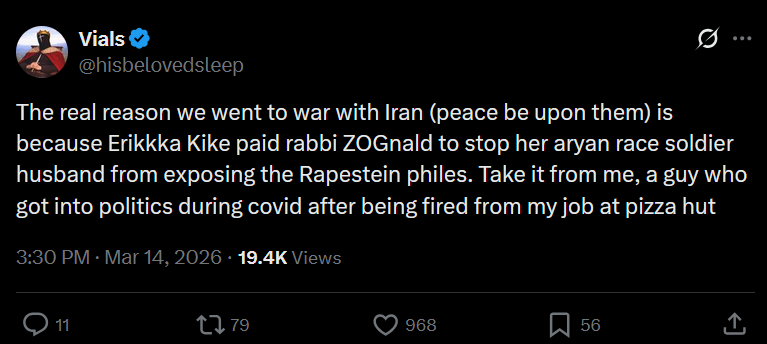 >>530816616Keith Woods is the opposite of a leftist.It's not a meme but a series of argumentative observations about the war.It's hard enough to find enough time to follow the war, without finding the extra time to follow what different people are thinking about it. It's a genuine question: Is this what the intelligent racist types are in general thinking about this war, or just Keith Woods?