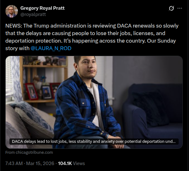 MAGA and good evening, frens!>>530845200>>530845233Doble check'd and thanks for baking, owlman!Glad to see DACA getting fucked over in creative ways.