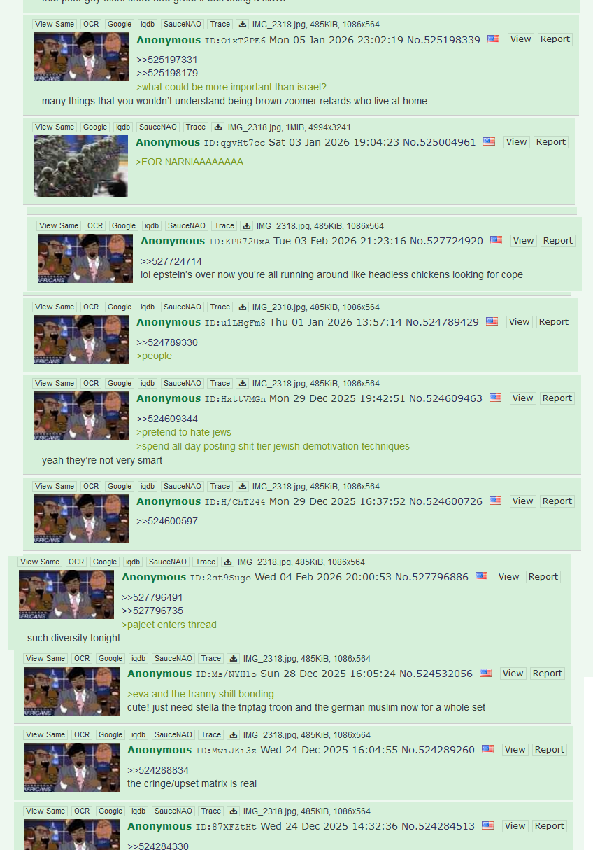 ALWAYS AWOOWE WON 2024 LOL (AND 2020)SNEED AND SEETHE SHILLSGOD PROTECT TRUMPDROP THE HAMMERSMASH THE PLACE TO PIECESPUNCH THE SCORECARDHANG THE RIGGERSJINX THE JABBERSFINISH THE WALLHOLD THE LINENEVER CONCEDEDRAIN THE SWAMPSINK THE CHINKBAN THE TRANSBE KAWAIIDEPOPULATE ELITESWE ARE SUPER ELITESIT'S OKAY TO BE WHITEJUSTICE FOR LORIKILL THE SHILLDON'T BAKE THE CAKEBE BESTHONOR ABEREMEMBER CHARLIEDEFUND THE FEDSALL FEDS ARE BASTARDSSTOMP THE TURTLESTRONGER TIMES NOWBETTER GET YOUR ACT TOGETHERLIGHT THE FUSEPLAY MINECRAFTEAT THE BURGERISRAEL IS NOT AN ALLYTHIS IS ULTRA MAGA COUNTRYBANKRUPT THE BANKS!WOLFGIRLS FOR TRUMPERS!DUM AND GAY IS NOT OKAYKEEP POSTING THAT FUCKING RACCOONDEPORT THE HORDE!CHRIST IS KINGALLEY CATS FOR TRUMP!FIGHT FIGHT FIGHT!TRUMP FOREVER!7/13 WAS AN INSIDE JOBBETTER WEIRD THAN QUEERALL GROYPERS ARE GAY FEDSPLUG THE LEAKERSRAKE THE LEAFSESCALATE TENSIONSMARS CHUDS UNITEHEIL SYDNEY SWEENEY'S GOOD GENESDONROE DOCTRINEUNLEASH CHANGBIG DICK BED CHEM MAGA ENERGY!>>530845233>>530845284>>530845536Good awoovening!