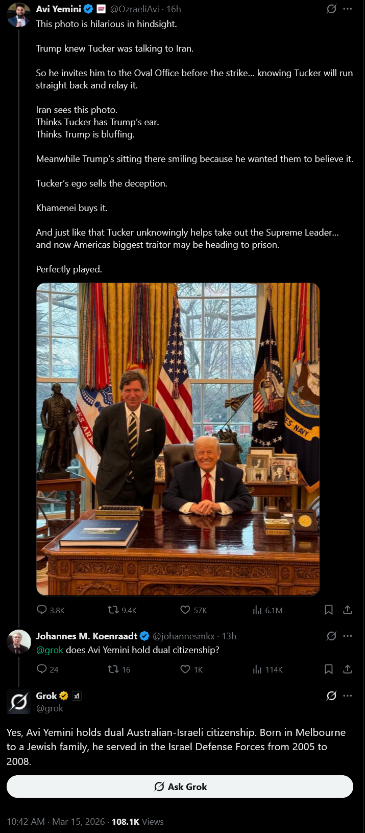 >>530845652Betrayal 1) Reversing his policy of "mass deportations" and only focusing on criminals instead. Typical Reaganite boomer logic, the same as Nigel Farage who flooded the UK with 20 million browns.Betrayal 2) Getting into a war in the Middle East which he literally ran against. Surrounding himself with neocon jews, the same ones who tried to sink his 2016 run. Betrayal 3) Removing military assets from Asia, which are intended to contain China, to support Israel's war in Iran instead. The most idiotic thing the US could be doing right now, essentially confirming we're going to die on this hill of Iran and then pass from the world. Betrayal 4) Millions of H1B's are flooding America to take your good paying jobs. Betrayal 5) Didn't lock her up, didn't drain the swamp. Became the swamp. Let's not forget the rampant grifting he's been doing, stealing money from his own supporters with rugpull cryptoscams, the "stop the steal" scam, and his tariff announcement rugpulls.