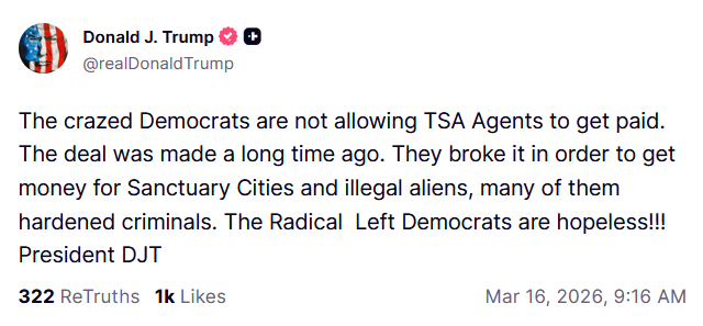 >>530870923truth social for some reason barely loads for me now. i wonder if trump hates people from maineanyways, i wonder if it'll be about>DHS fundingor>strait of hormuzor>measures to deal with fuel costs