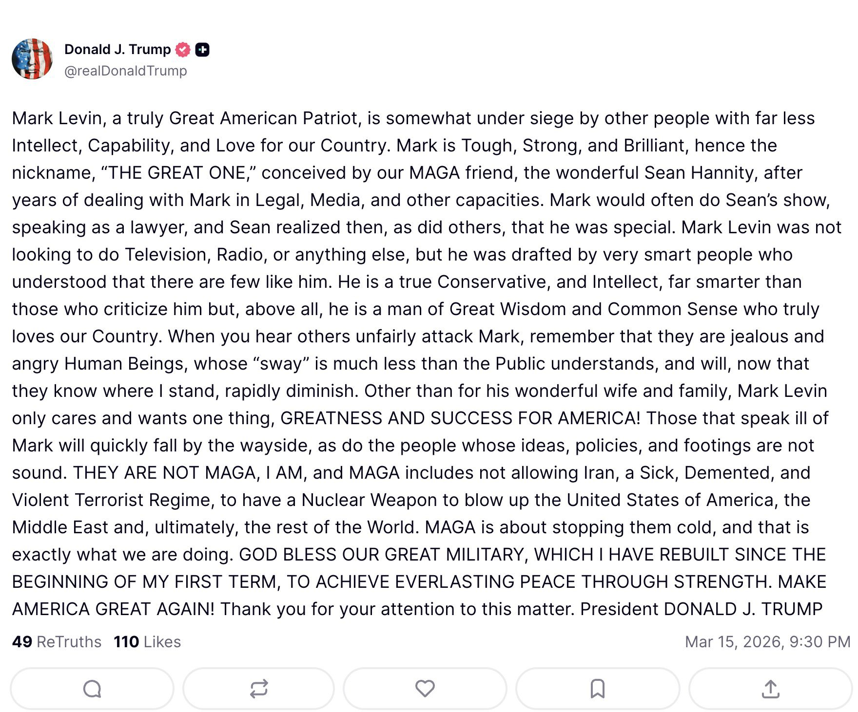 MAGAhttps://truthsocial.com/@realDonaldTrump/116239050427498715
