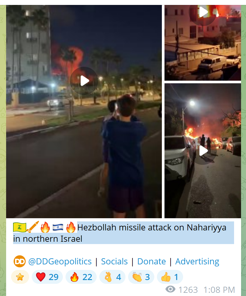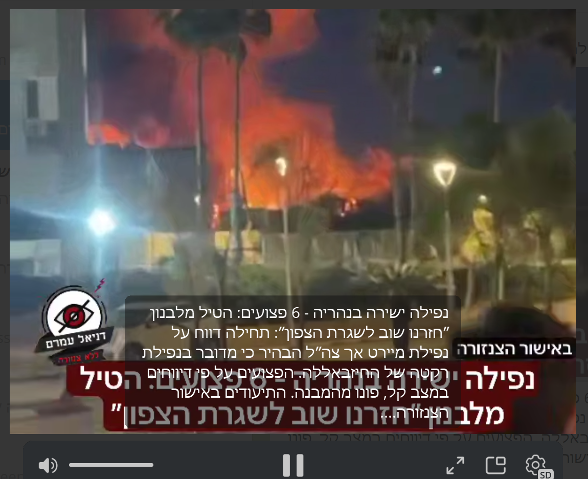 >NEW VIDEOWidespread fires and destruction in Nahariya after it was hit by missiles and drones launched by Hezbollah.