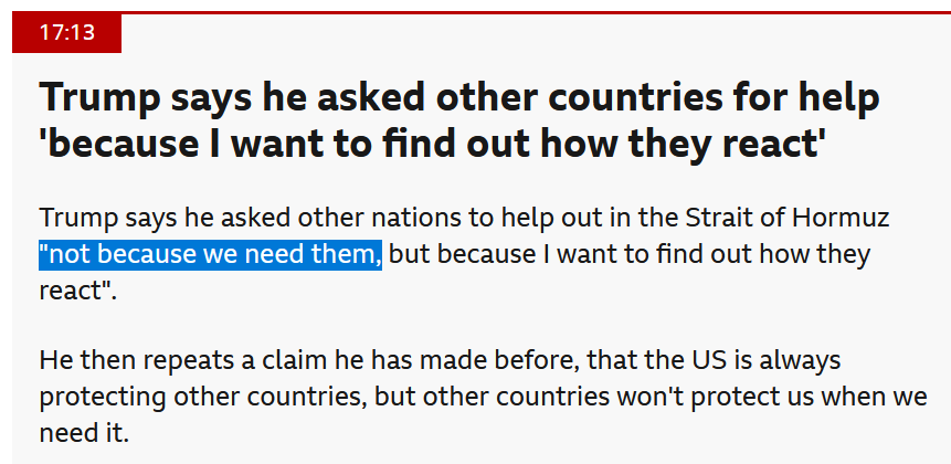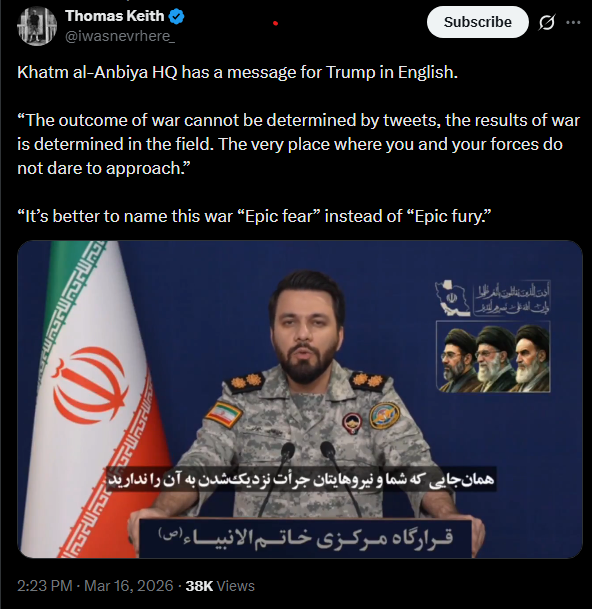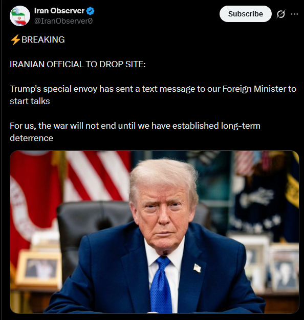 Witkoff has been awfully quiet every since Day 2 when he said the Iranians needed an attitude correction.