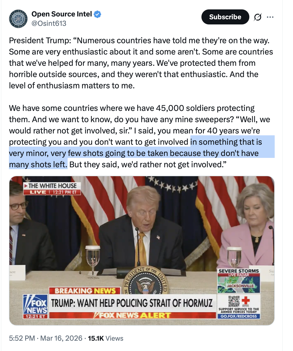 >President Trump warned NATO that it faces a "very bad future" if it does not help the US open the Strait of Hormuz