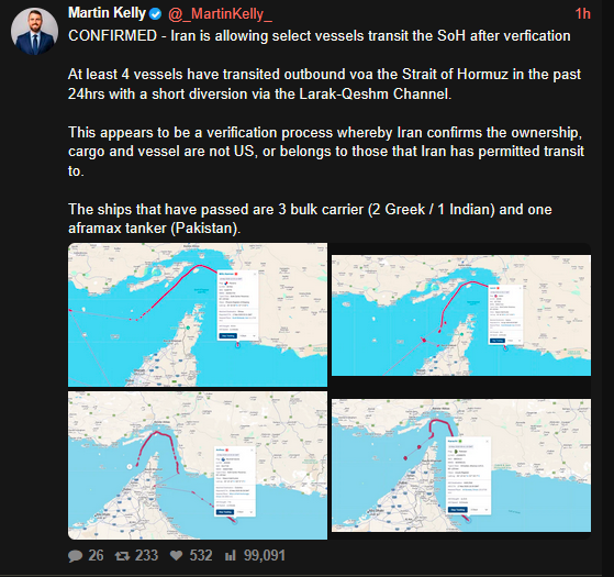 >Iran "open to countries who want to talk" about safe passage through the Strait of Hormuz
