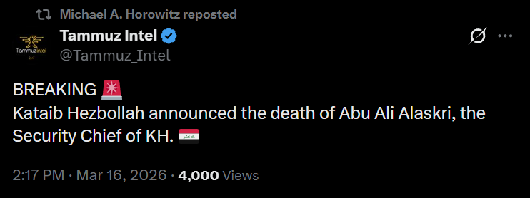>Multiple successive drone attacks struck the area near Baghdad’s Green Zone, likely in response to the martyrdom of a senior Iraqi Hezbollah commander