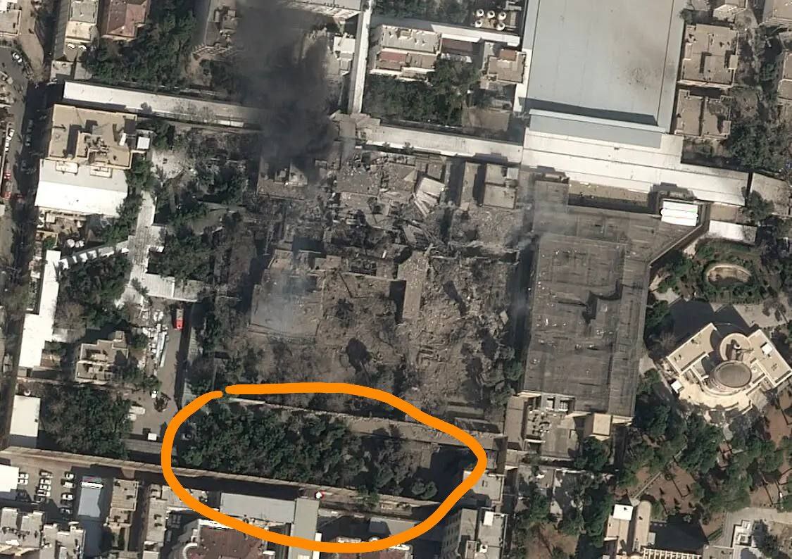 The British Telegraph reveals in an exclusive recording from the morning of February 28:>Mojtaba Khamenei was present at a meeting with his father, Ali Khamenei, about three weeks ago, minutes before he was eliminated. According to the briefing, Mojtaba briefly went out to the nearby garden during the meeting and because of that was not eliminated. He was lightly injured by shrapnel in his leg.|>The yard where Mojtaba Khamenei was supposedly staying during the attack on the compound.Reminder that touching grass can save your life.