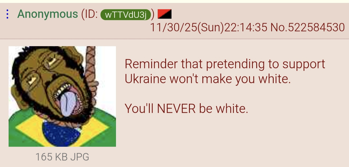Be aware, any /chug/ thread that uses globohomo nuspeak wording in the OP (such as Kyiv) or cites UKROP sources (like video game footage) are fake shill threads.