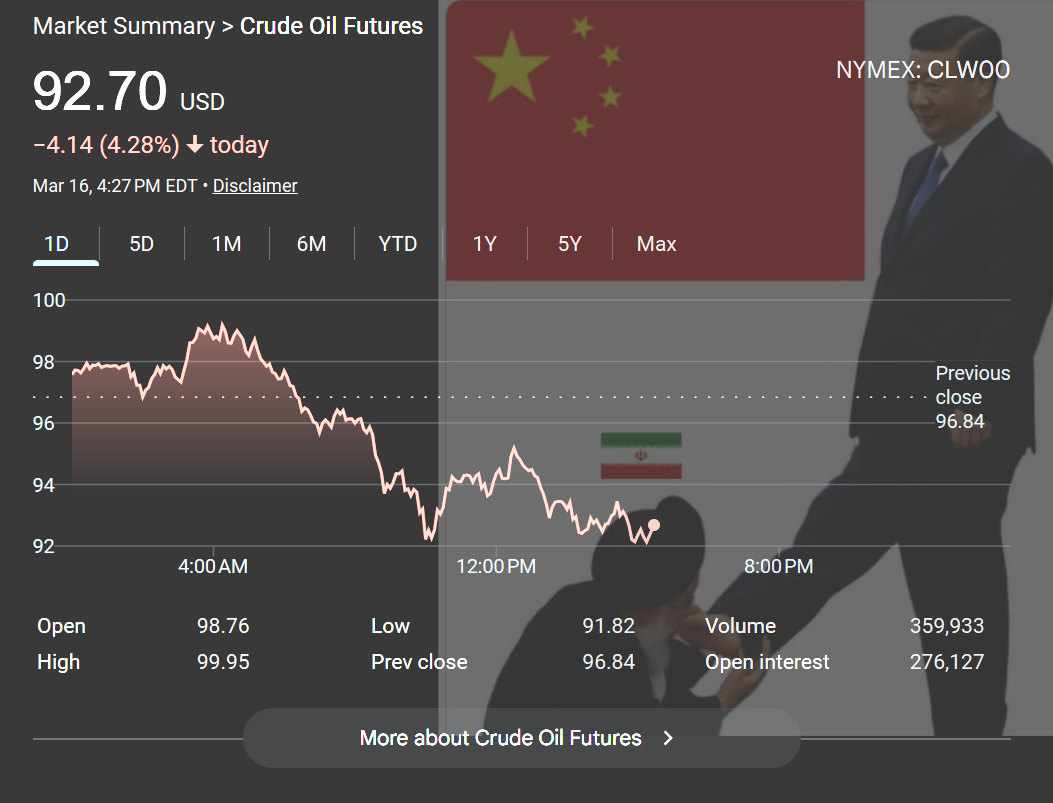 >>5309137513/A War on Iran is a War on Global Energy>China is the world’s largest crude oil importer and Iran is its second-largest supplier after Russia, accounting for roughly 15% of China’s oil imports, much of it at discounted prices, and powering China’s economy, particularly the manufacturing sector. 90% of Iran’s oil exports go to China. >The conflict in Latin America and the kidnapping of Maduro was another war on Chinese energy imports in its own way with Venezuela sending over half its exports to Beijing before January 2026, accounting for another 2% of China’s crude oil imports. >Over half of China’s oil passes through the Strait of Hormuz, which has now been closed by Tehran, placing it at the centre of the war and causing a severe economic crisis in the United States and Europe.>After recent strikes, Gulf vessels began avoiding the strait and crude prices surged over 12% to $115 per barrel.>China holds 2 to 3 months of strategic reserves, according to Western sources which is enough for a short-term crisis but not nearly the amount needed for long-term stability. >However, the good news is Iran is still sending crude oil to China through the Strait of Hormuz.