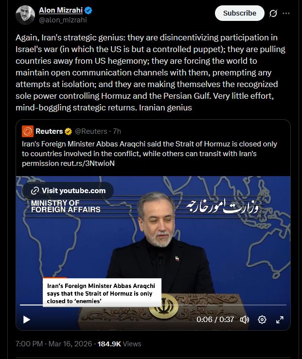 >Your final battle will begin soon. -Mossad in Farsihttps://x.com/MossadSpokesman/status/2033433677418414350>Missile fragments fell on the Temple Mounthttps://har-habait.org/article/734