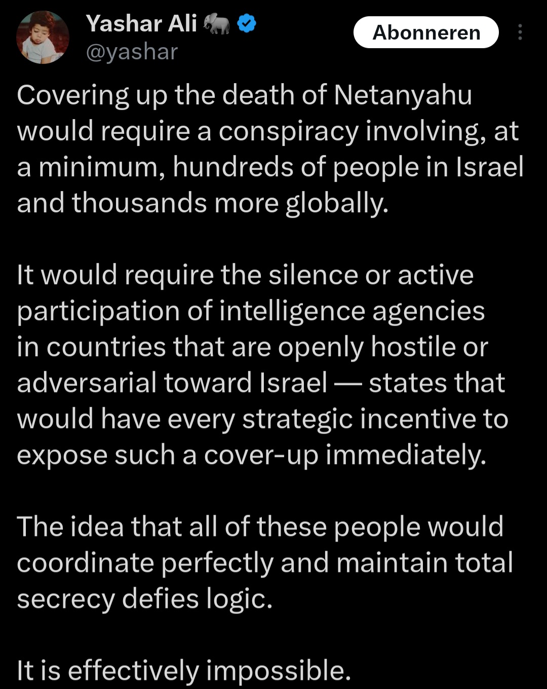 >nothing but cope, seethe and schizo rambling about Netanyahu