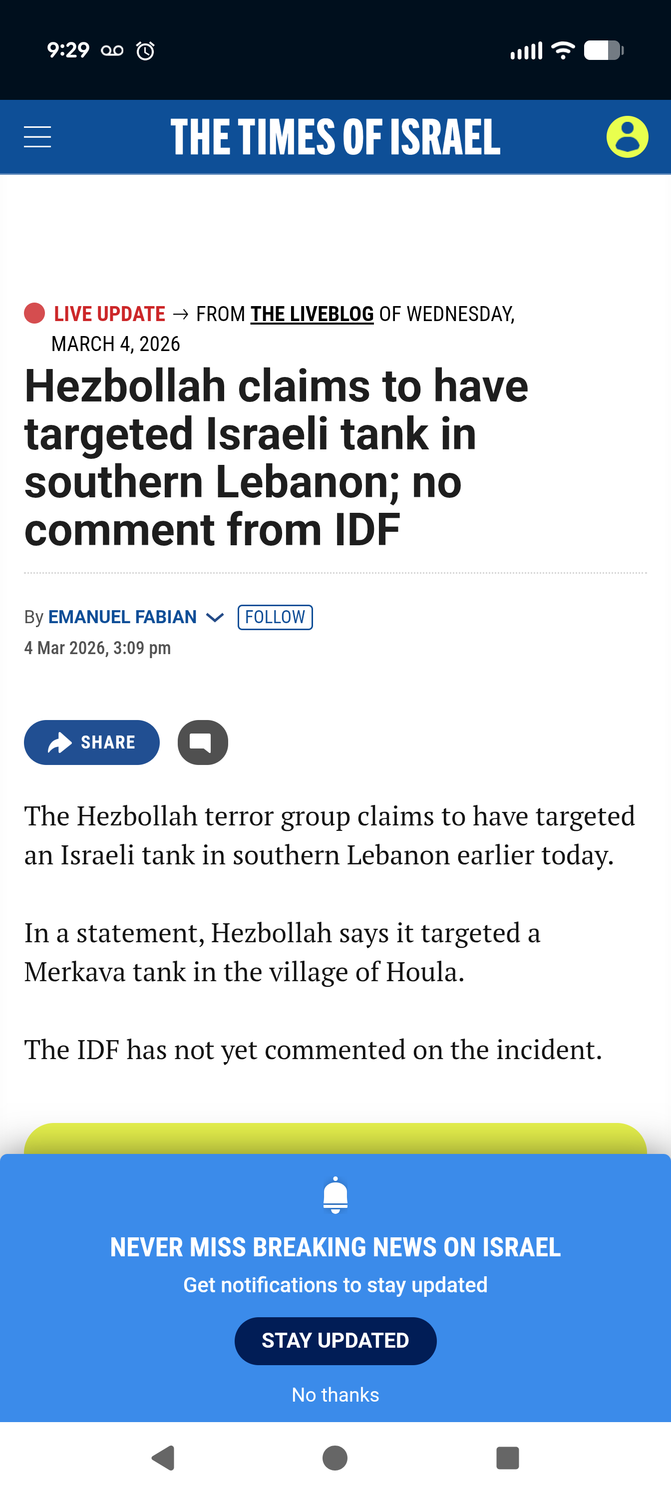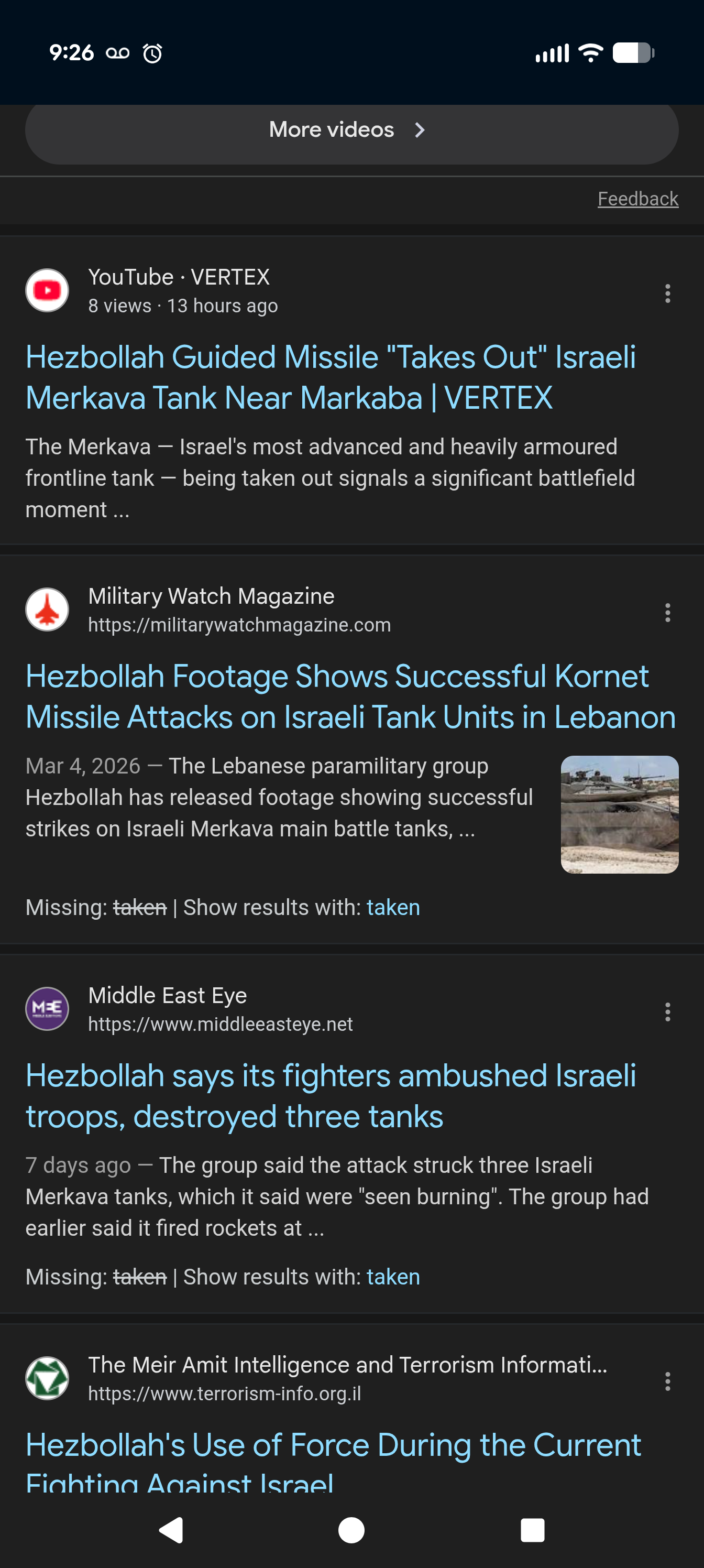 >hezbollah claims it destroyed tank