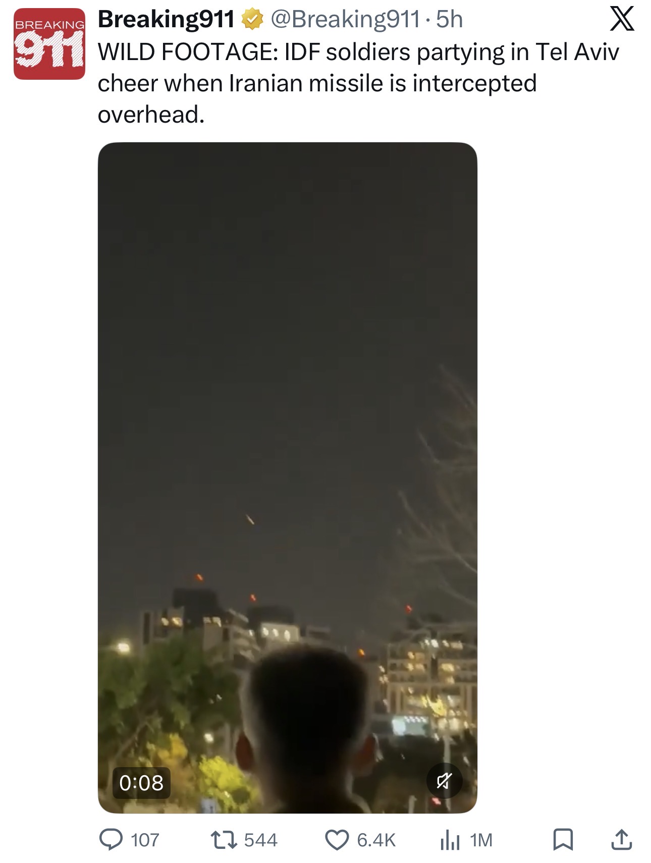 >IDF soldiers partying in Tel Aviv cheer when Iranian missile is intercepted overhead.https://x.com/breaking911/status/2033640753054826651?s=46lol they’re mocking you IRGC sissies at this point