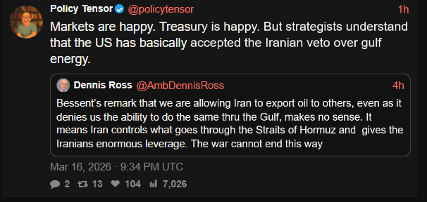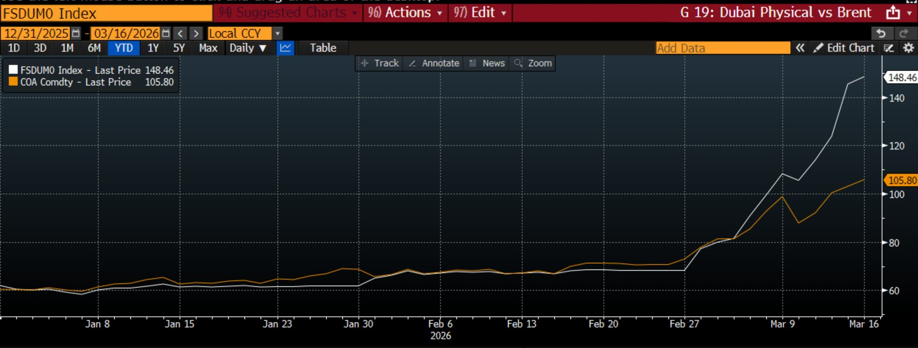 Its temporarily un sanctioned, and it's seeming at a premium because it exists abs the brent does not. The premium will go higher and higher, and then bam April deliveries come and the US quietly bails out the Jewish hedge funds who traded it lower. Maybe we bail them out for April as well, and they Paper trade it low again. This is standard practice, and what epstein was bragging about