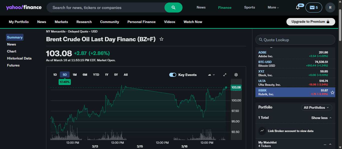 $104 Brent Crude, $3.75 per gallon of petrol